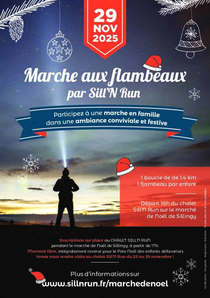 À l’occasion du marché de Noël de Sillingy, Sill’N Run organise la marche aux flambeaux des familles. Un évènement familial et convivial dont la totalité des bénéfices sera reversée pour offrir un Noël aux enfants défavorisés.
